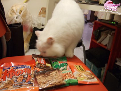 貓咪咩咩移住日本 [貓咪]咩咩偷吃我最愛的日本零食柿の種 by Peikie 28 10 月, 2010 昨天一位日本朋友記得我最愛吃柿の種(かきのたね)所以他父母上周來台灣觀光時,他拜託他父母幫我帶了好多口味的柿の種給我。因為去日本時也沒發現有這麼多種口味,所以我想拍照當紀念,這時候咩咩進攻了… 他一臉狐疑的喵了一下 彎下來開始聞,又是我最喜歡的塑膠袋了。 再來,他的白色大毛頭不斷擋住我的視線,還想把我的零食咬破 他進攻了我的起士口味 來介紹一下口味吧!(由左至右)原味、巧克力口味(上)生姜口味(下)、山葵口味、起士口味 其實我最愛山葵口味啦! 可是咩咩吃的話,會辣到翻掉吧? 28 10 月, 2010 0 留言 0 FacebookTwitterPinterestLINEEmail