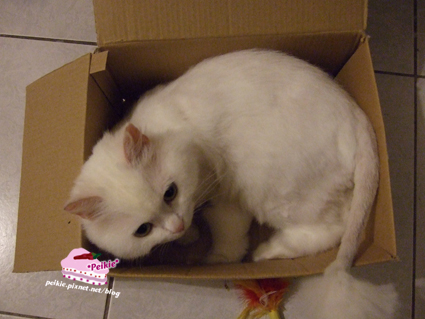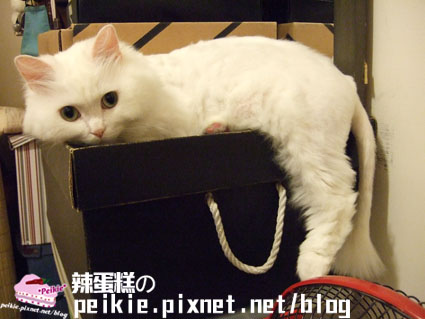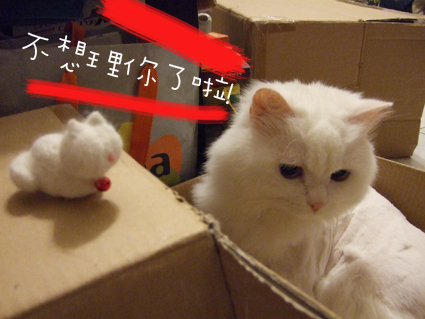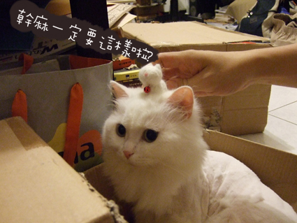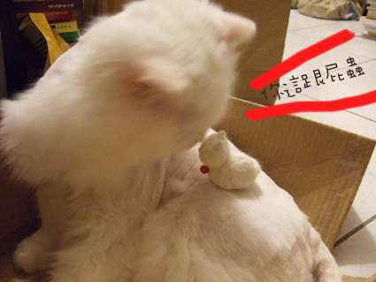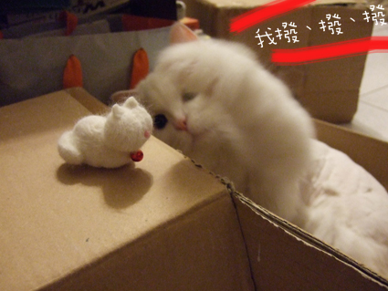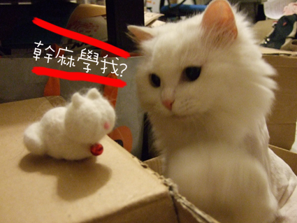 貓咪咩咩移住日本 [貓咪]貓毛氈與真貓咩咩互鬥 by Peikie 12 7 月, 2010 去年咩咩被火焰女剃下很多白毛我收集成一個垃圾袋其實咩咩毛長得很快,一個夏天要剃兩次毛才能涼快度過夏天終於,我把咩咩毛戳成這隻小咩咩了。其實是拿針戳到自己的手戳了好幾次,痛了好幾次才有這隻貓咪的。 我把它拿近咩咩,一起拍照。咩咩一開始超好奇的,還想伸出舌頭舔它咩咩發楞著看著跟他長得一模一樣的小咩咩, 而我硬是要把小咩咩貓毛氈放到咩咩頭上咩咩一臉超無奈心底想著:幹嘛一定要這樣啦? 我只好又把小咩咩貓毛氈放回紙箱上,咩咩就說:不想理你了啦。 我又偷偷放到咩咩身體上咩咩大吼:你這跟屁蟲。 我只好又把小咩咩貓毛氈放回紙箱上沒想到咩咩想巴他的分身小咩咩。 12 7 月, 2010 0 留言 0 FacebookTwitterPinterestLINEEmail
