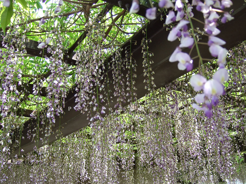 這區域的藤花有白色、粉紅色、紫色…。