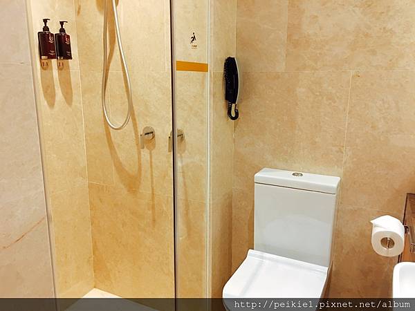 淋浴空間非常小,乾淨的衣服可能只能放在馬桶上了。