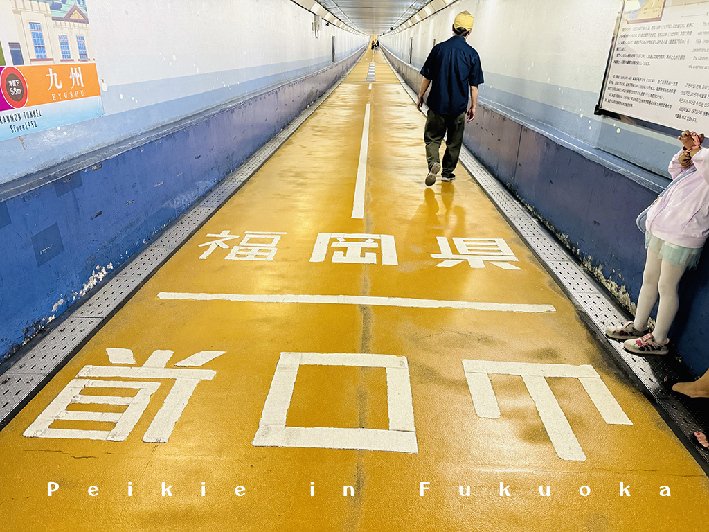 往返約莫30分鐘。一直很想通過海底隧道走到山口縣下關,山口縣就不屬於九州啦!一天之內可以玩2個縣也真是神奇呢。大家也可以用套票玩哦!門司港站有賣關門海峽三圈交通票(日文比較正確:関門海峡クローバーきっぷ800円),不過我們是慢慢從幸福的黃色香蕉郵筒散步到這裡的,約莫30分鐘以內,沿路是沿著海看海景,不熱也不冷非常舒服,隧道約莫走15分鐘就走完了。在門司與山口交接處,蠻多觀光客會駐足拍照的呢。