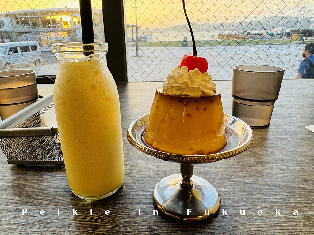 離開門司港的電車還有一些時間,決定來吃甜點,這間也是參考了很多日本人的部落格與IG而放到口袋的甜點店。似乎必吃的是門司港布丁,當天到了現場看到海報,也是能非常挑起食慾的布丁啊!這絕美的布丁拍攝技巧,必須學習。這間餐廳一直都蠻多客人,約莫晚餐時間