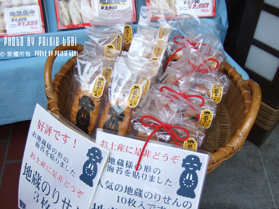 附近都是賣可愛的地藏王形狀的仙貝,海苔的形狀是地藏王的模樣。