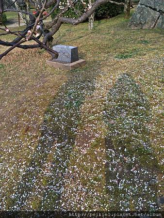 午後的陽光,散落滿地的梅花花瓣,散步的快樂時光。