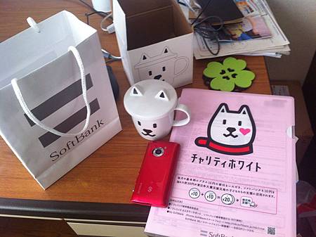 以下照片就是softbank送的贈品,狗爸爸茶杯一個、狗爸爸L型資料夾。