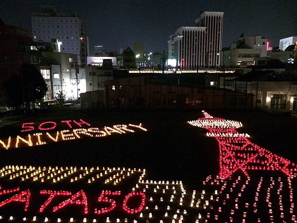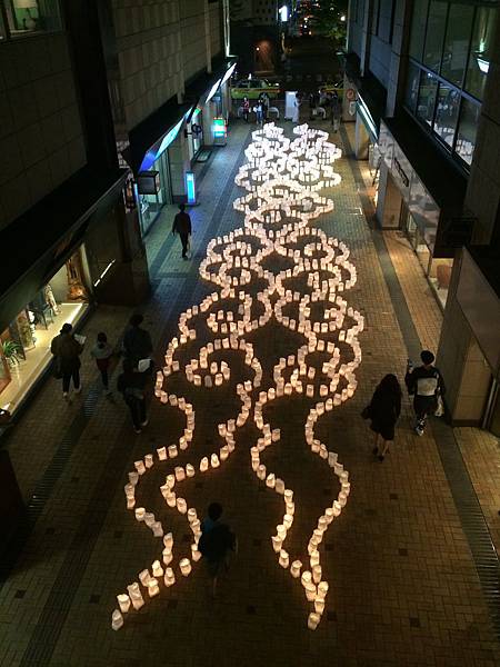 這一天,由博多的小朋友畫出博多城市裡的觀光景點、城市裡的道路或公園、購物中心..等,在這些地方放上和紙製作的灯,在裡面點上蠟燭。