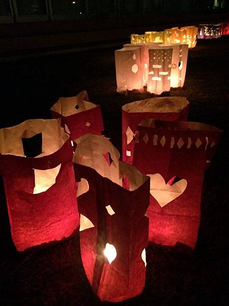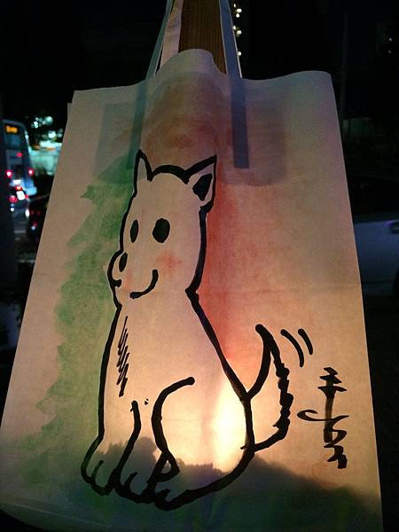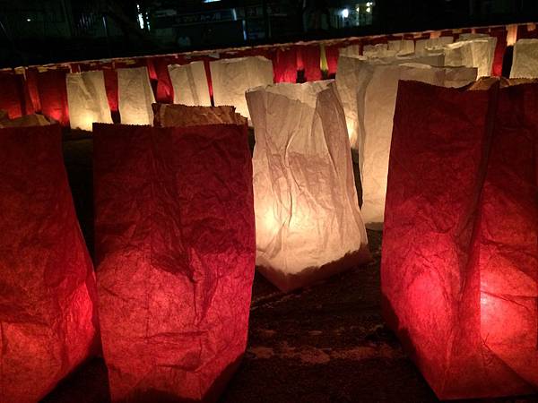 用火點燃的灯明中,在各種顏色的和紙紙袋裡放入蠟燭,