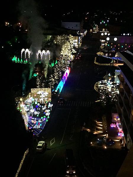 泡完湯熱呼呼再散步看電燈一邊走回來。