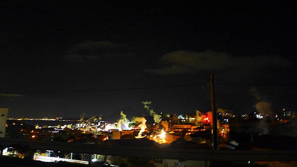 晚上的別府,依然看的到溫泉冒煙陪襯著燈光的景色。