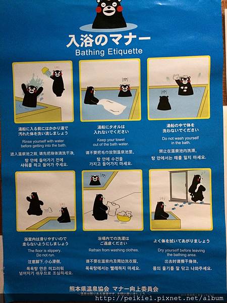 還有熊本熊的插圖,教大家日本泡澡的禮貌。