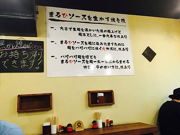牆壁上寫的是這間店如何活用醬汁將炒麵炒的焦脆。