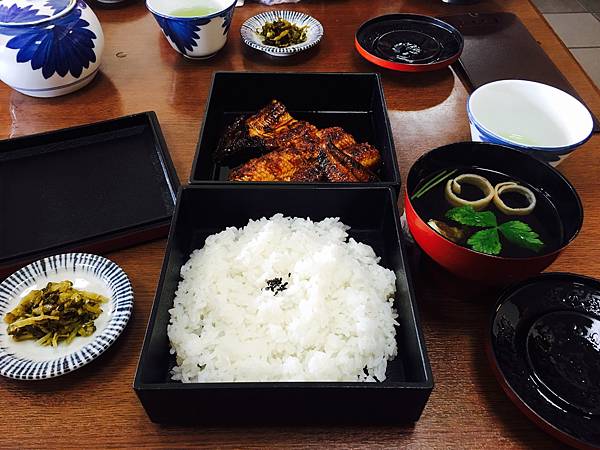 整體就是有左邊的小碟高菜(像台灣的醬菜),米飯,鰻魚,吸物(湯)組合而成。