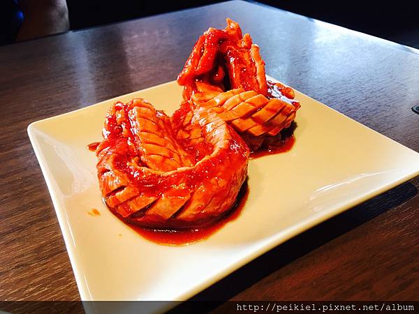 首先會送上這裡的經典菜色,(一條牛五花)。