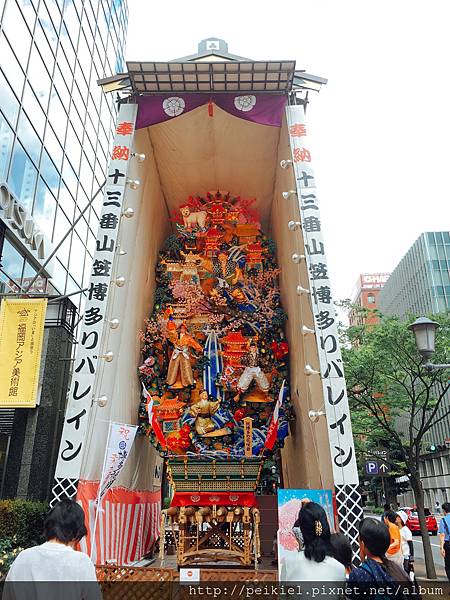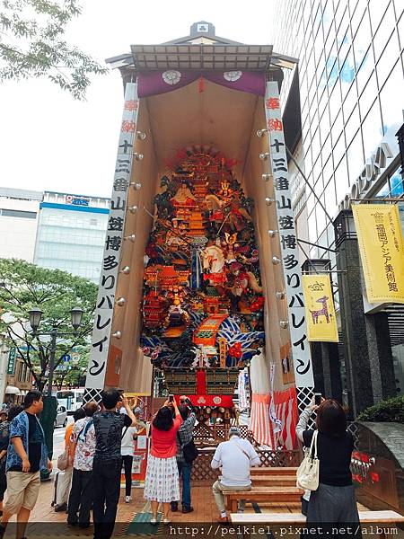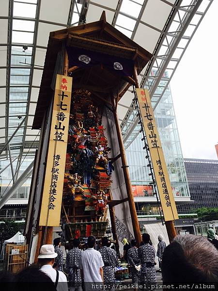 博多站前的第十七號博多站商店聯合會,每年都會裝飾好山笠,裝飾非常高。有些甚至超過10公尺,非常壯觀,若每年在6月20日以後~7月15日為止有到博多站的話,不妨走到博多口看一下山笠裝飾哦!