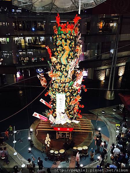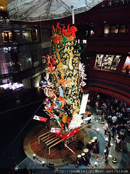 當然許多外國人來到九州福岡,最常來購物的博多運河城(キャナルシティ)裡面也有一尊山笠裝飾,不妨來這裡尋寶拍照。