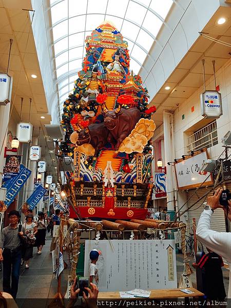 這是中洲川端商店街裡的山笠裝飾,一尊大的是大人製作的,