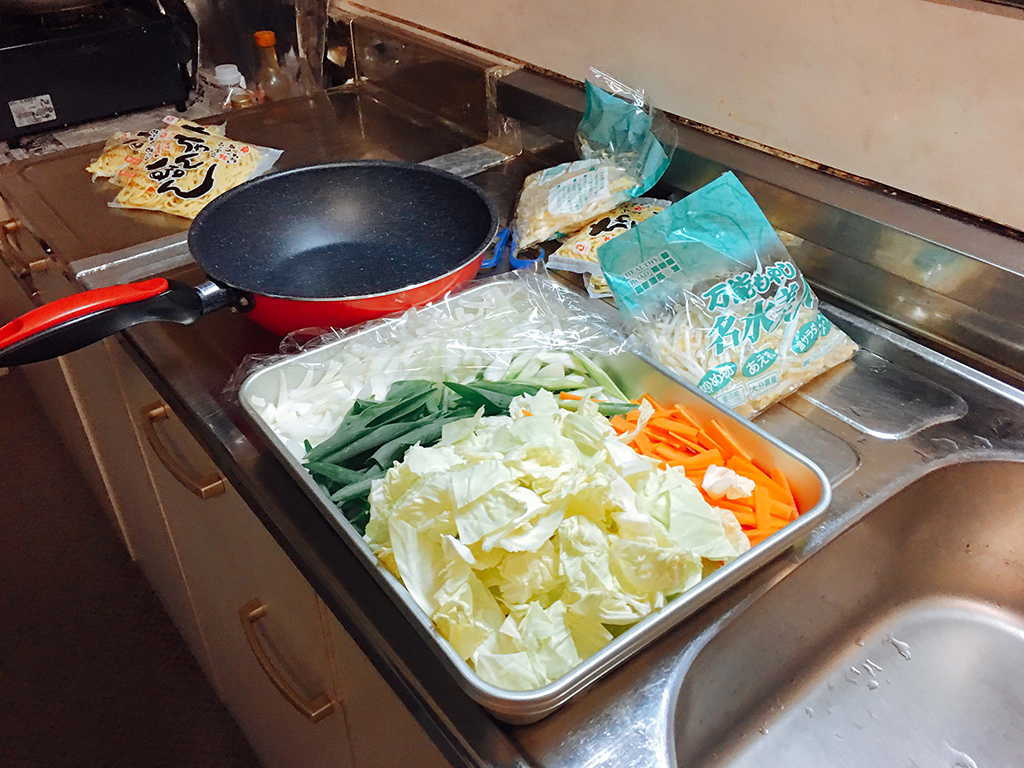 有洋蔥、青蔥、高麗菜、紅蘿蔔、肉絲、豆芽菜…等。