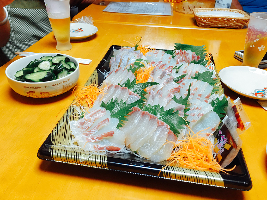 大家也開動了!沒想到端上來第一盤就是一大盤豪華生魚片。