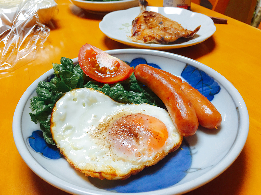 有烤魚、熱狗、味噌湯、愛心荷包蛋、生菜沙拉…。