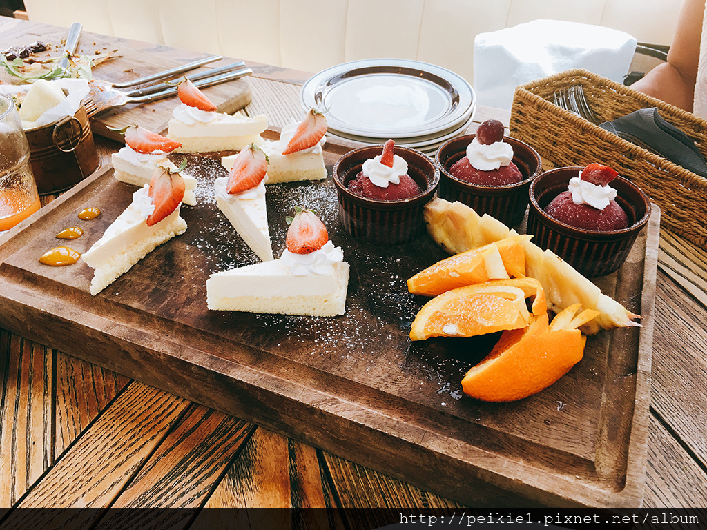 |甜點・奶油布丁草莓蛋糕與冰沙跟水果|