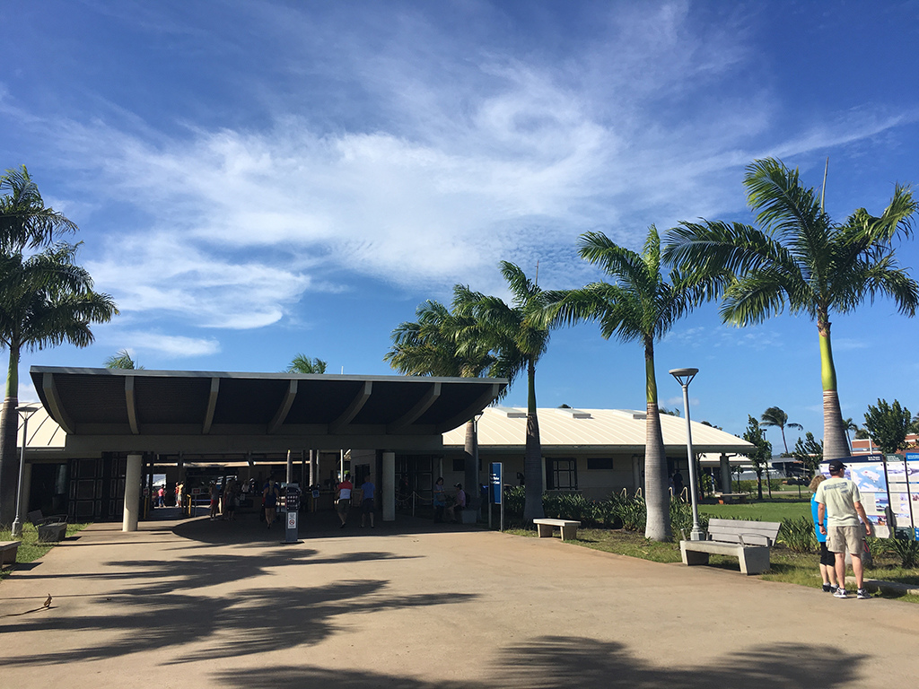 一到珍珠港就會看到遊客中心入口,有各種語言的導覽,