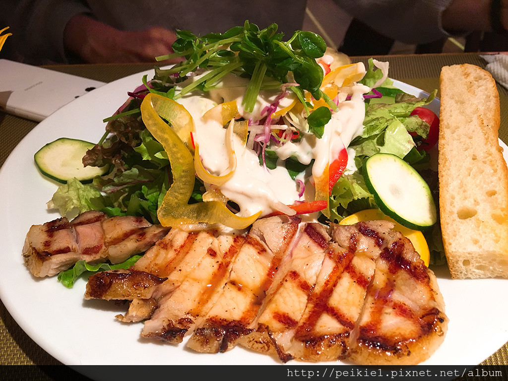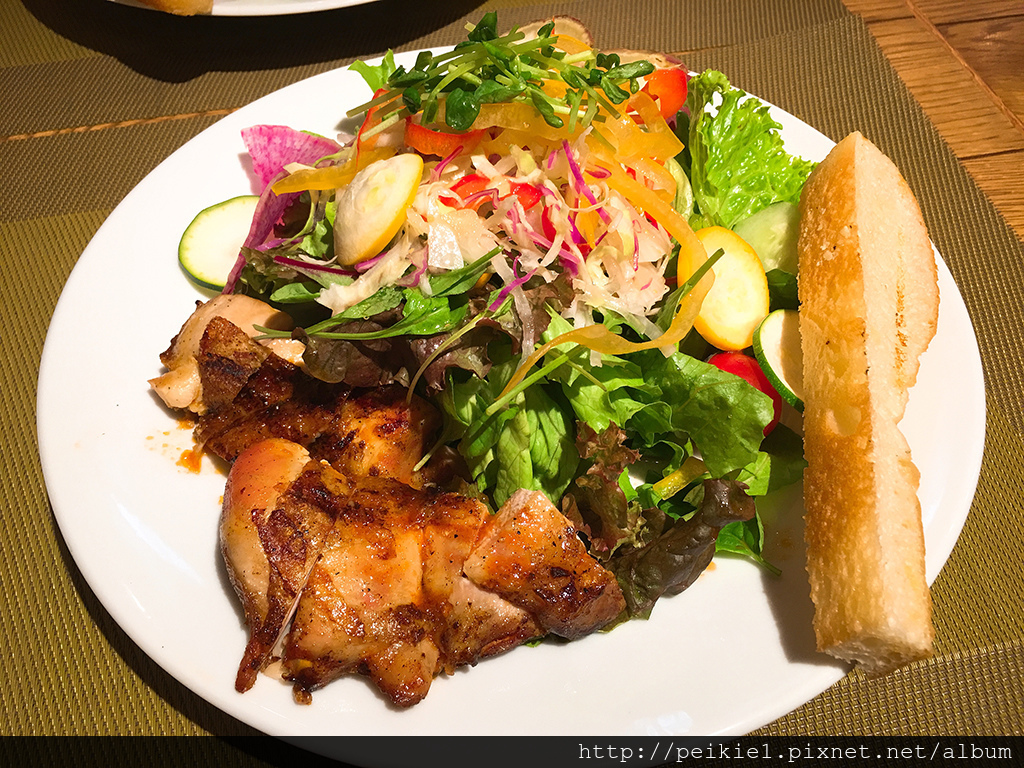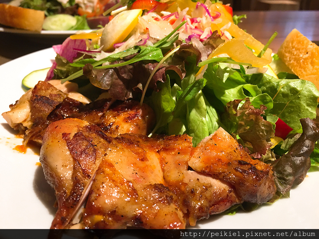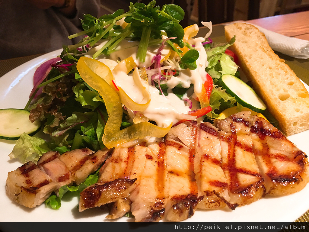 莎拉的份量也是相當多,跟辣雞餐一樣附上一片麵包。