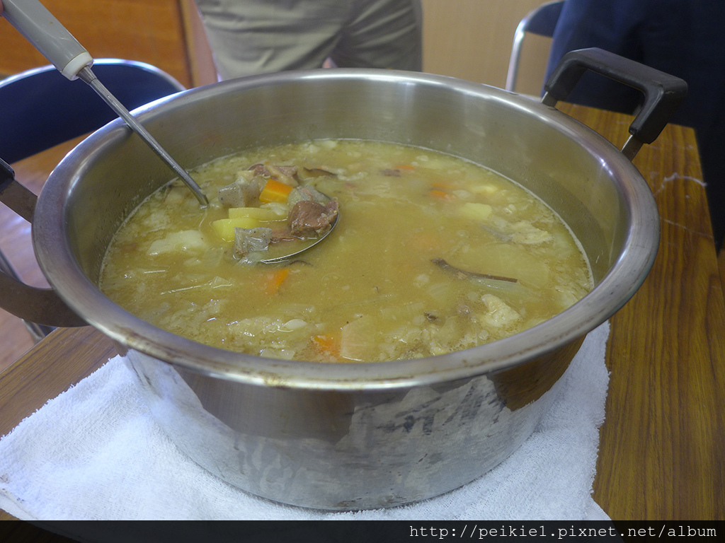 當地的阿姨們,正在免費發放山豬肉鍋哦!