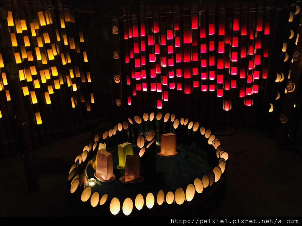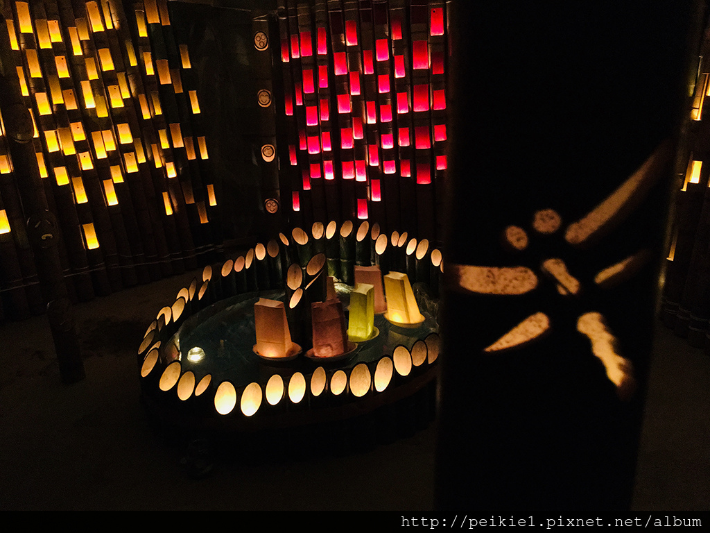 這裡全是竹子砍著各種形狀的燈光,
