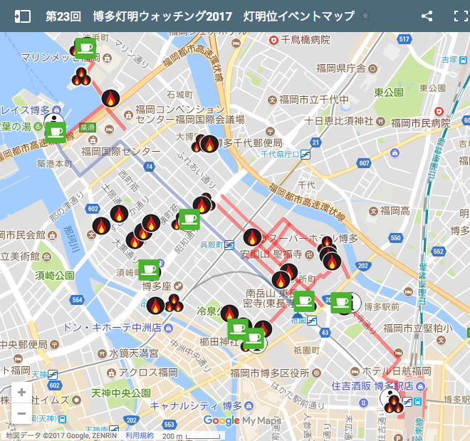 2017年第23回博多灯明,剛好一整天下雨的傍晚,終於停止了。