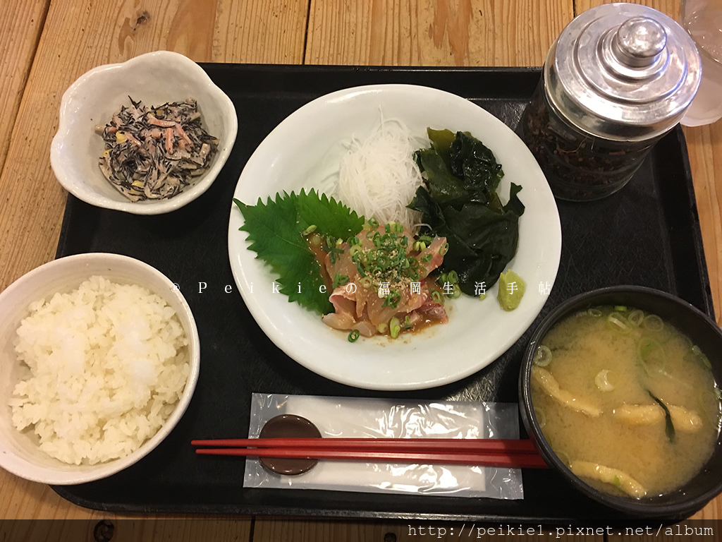 會附上一碗白飯、味噌汁、ふりかけ(灑在白飯上的乾物)、小菜一碟。