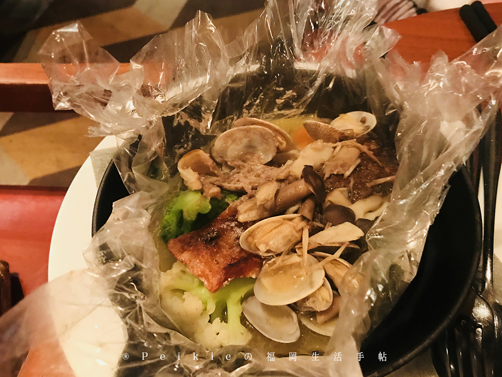 這一小包就是海鮮煲鮮魚,裡面有蛤蠣、花椰菜、香菇之類的。