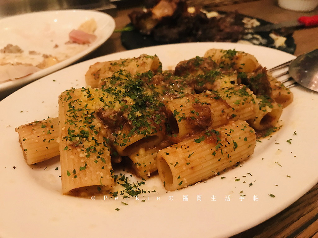 上面這道是燉牛肉碎肉炒寬義大利麵。