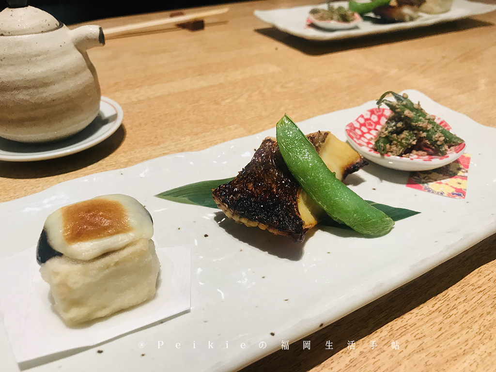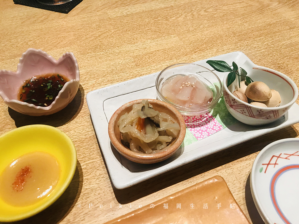 中間那盤是柚子章魚、最右邊是烤銀杏。