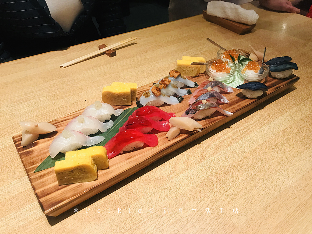 接著仍是不間斷的魚魚魚、壽司三人份送上桌來,