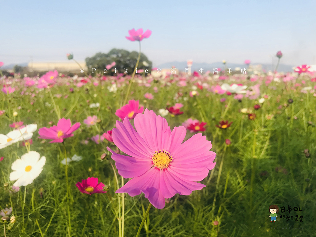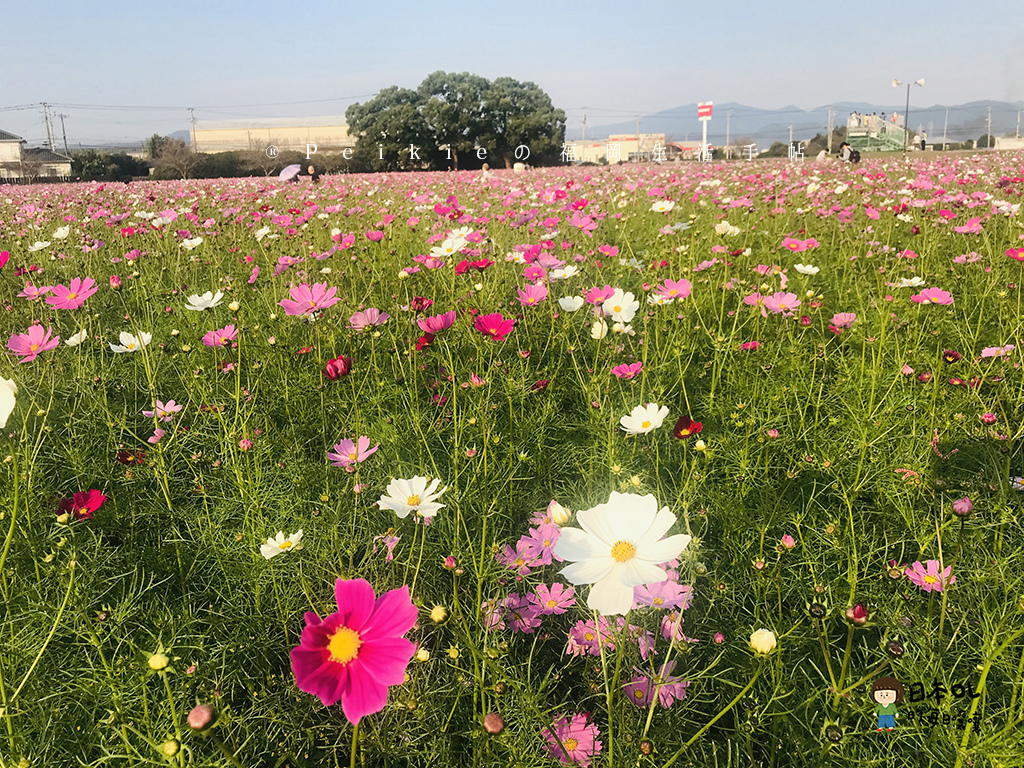 秋季可以來福岡縣小郡看非常盛名的波斯菊花田,