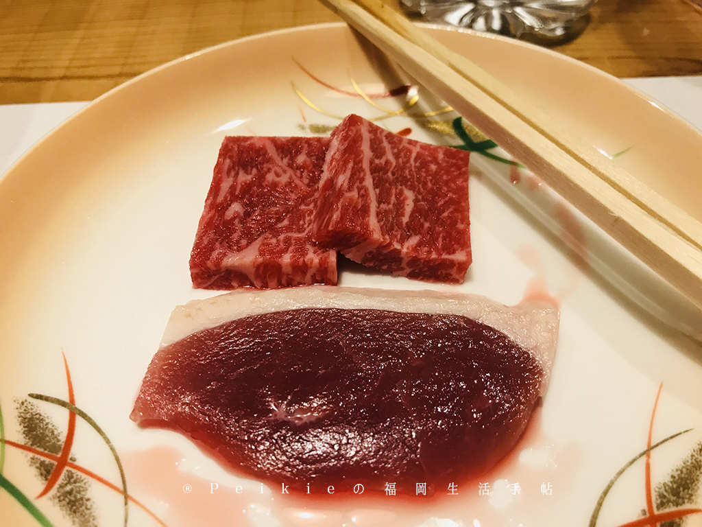 前菜有豆乳豆腐、烤牛肉一片、其他我叫不出來的菜。