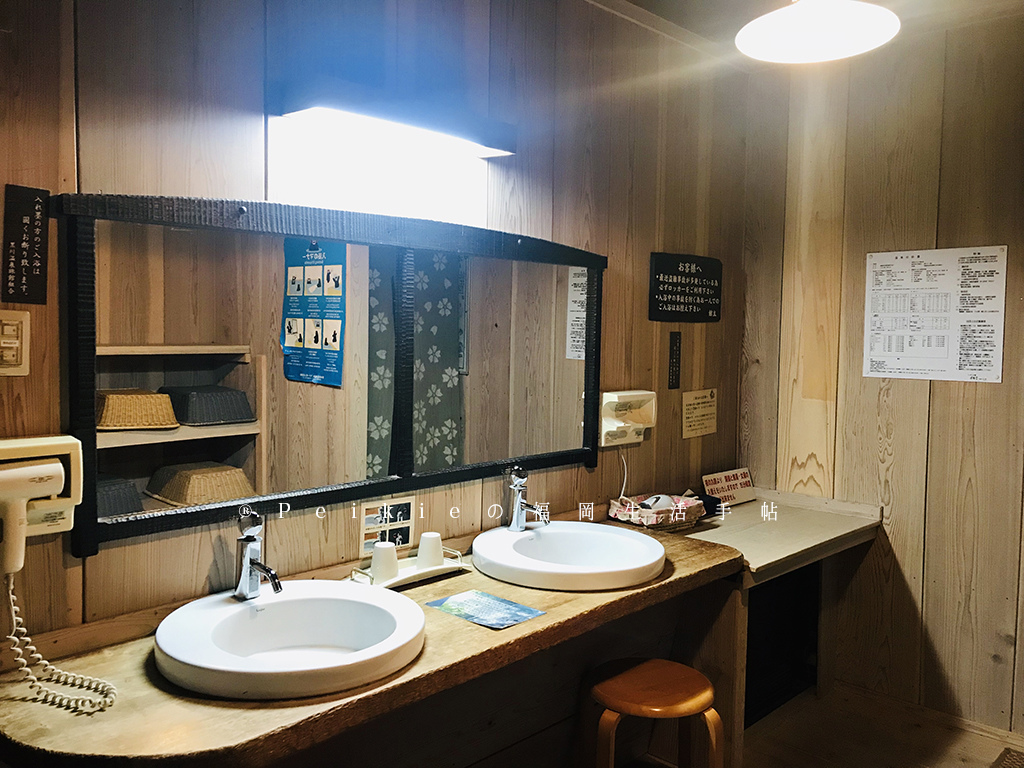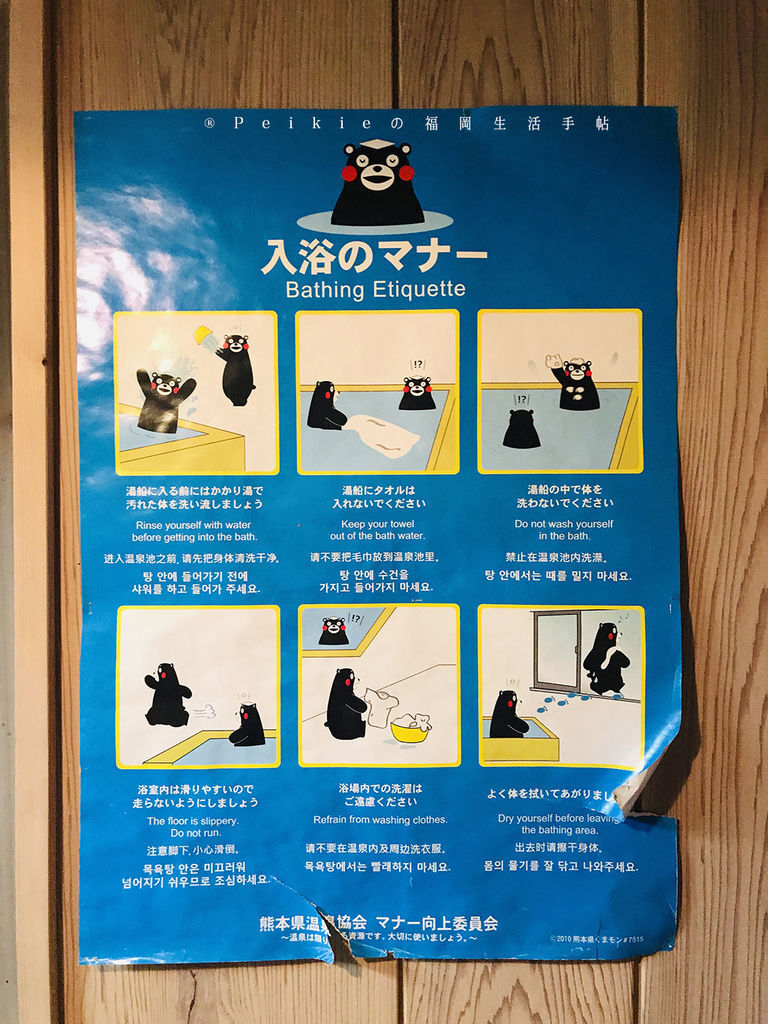 牆上也有熊本熊的入浴規則與禮貌的各語言版海報說明。