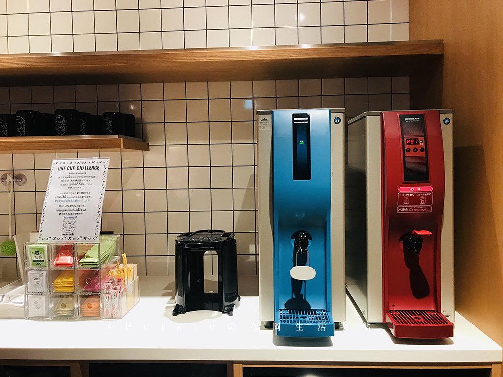 據說Wework裡的飲料是隨意喝到飽的,不需要自己帶杯子,這邊有許多杯子可以使用,當然一定有咖啡,還有冰牛奶與冰豆乳哩!喝完只要放在洗手槽裡就好了。因為你付的費用裡,包含這些的清潔費。你說這裡一個月貴不貴?光是自由席就要49000日圓囉!自由席的意思就是沒有固定座位,每天可以帶著筆電進來隨意找地方坐,使用他們的電力與無線網路,當然還有其他一些服務囉!想創業的話,除了大名小學校的租借辦公室是個選擇,Wework也是辦公室好選擇哦!也可以登記辦公室的住址在此,有人會幫你收發信件,每個月還有許多交流活動,聽朋友說每週一早上還有免費提供三角飯糰當早餐呢!是某飯店大廚手捏的日式飯糰哦!看完都想入住這裡了。