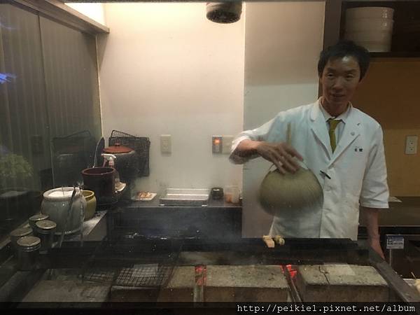 個人是非常喜歡櫃檯座位,因為可以看到廚師做料理的樣子。也可以跟他們聊天。這次櫃檯上的擺飾,真的很美的設計的,一群紅色的魚串起站立著,一整排的座位還蠻舒服的。